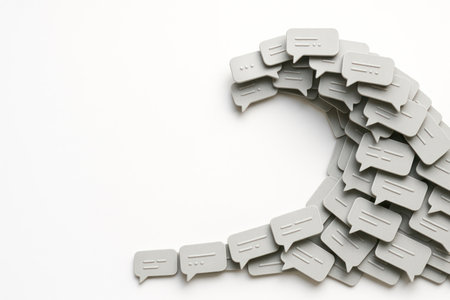 Abstract composition with white speech bubbles on background. for communication, social media, dialogue, messaging, or discussion concept designs.