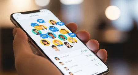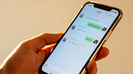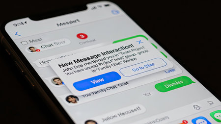A close-up view presents a smartphone screen displaying a new message notification. The screen showcases a messaging app interface, with a pop-up alert over the chat window. The composition features sharp focus, suggesting a modern technological context and a potential for use in articles or advertising.