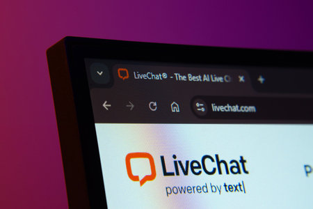Dhaka, Bangladesh- 02 June 2025: Close-up of a computer screen displaying the LiveChat web interface in dark mode.