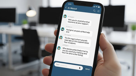 User engages with chatbot interface shown on a mobile screen while holding the device in a clean and minimalistic space.
