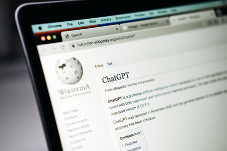 Screen with ChatGPT chat with AI or artificial intelligence. Man search for information using artificial intelligence chatbot developed by OpenAI. Warsaw, Poland - December 02, 2022