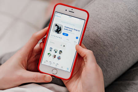 February 17, 2021, Moscow, Russia. Clubhouse social network application on a mobile phone screen.