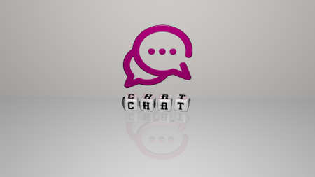 3D illustration of CHAT graphics and text made by metallic dice letters for the related meanings of the concept and presentations. icon and communication
