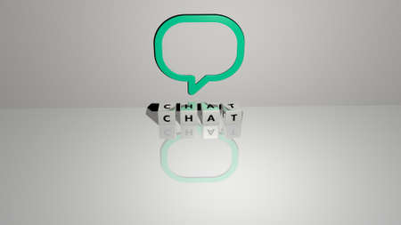 3D illustration of chat graphics and text made by metallic dice letters for the related meanings of the concept and presentations. icon and communication