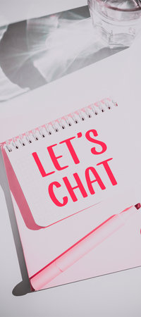 Writing displaying text LETS CHAT. Business concept inviting the person to have informal conversation with you