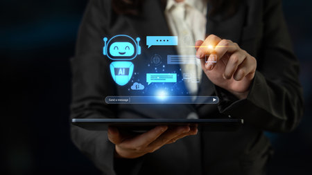 Chatbot conversation Ai Artificial Intelligence technology online customer service.Digital chatbot, robot application, AI generate. Futuristic technology.Virtual assistant on internet.