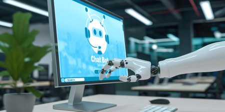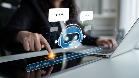 AI Chatbot smart digital customer service application concept. Computer or mobile device application using artificial intelligence chat bot automatic reply online message to help customers instantly.