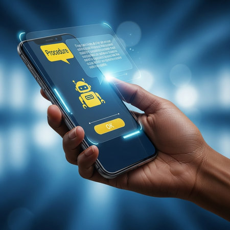 Smartphone screen displaying a chatbot concept in front of a blurred background