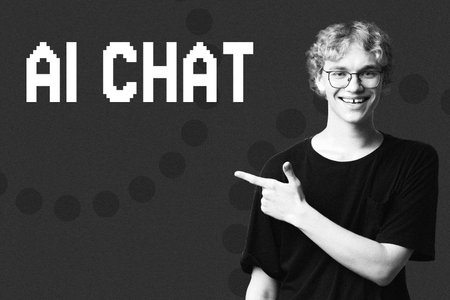 Digital interaction and technology enthusiasm with chatbot application depicted in a vibrant studio setting
