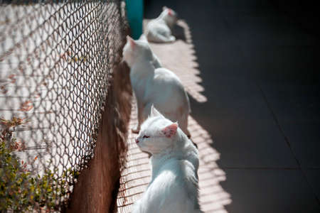 Turkey, a cat with blue and yellow eyes, in the cattery of cats in the city of Van.