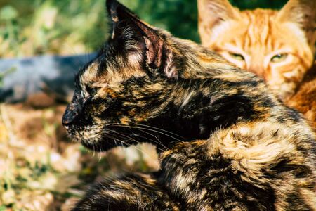 Paphos Cyprus March 06, 2020 View of abandoned domestic cat living in the streets of Paphos