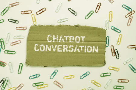 Hand writing sign Chatbot Conversation. Internet Concept Chatting with virtual assistant artificial intelligence Businesswoman Holding Mobile Phone With Important Messages Sitting On Desk.