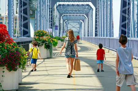 Walnut Street Bridge over Coolidge Park in Chattanooga, Tennessee.