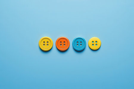 A vibrant arrangement of colorful plastic buttons displayed on a soft blue background, perfect for crafting, sewing projects, and artistic endeavors.