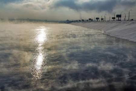 black-white patterns of air bubbles on the ice surface. Abstract background