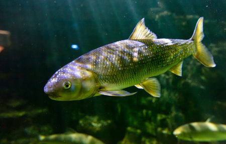 schwanenfeldi fish or Bream barbus in aquarium. Wildlife animal.