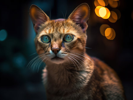Stunning Close-Up of an Abyssinian Cat with Striking Amber Eyes and Unique Markings in Soft Light