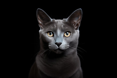 Majestic gray cat with intense amber eyes in minimalist setting for pet lovers