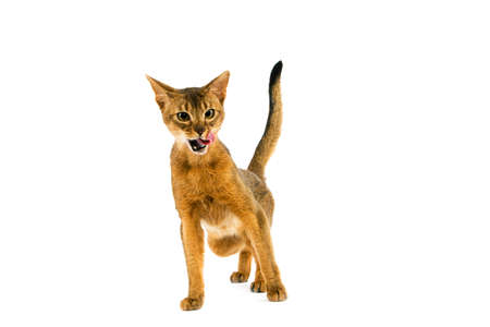 Beautiful Abyssinian cat isolated on white background with clipping path.