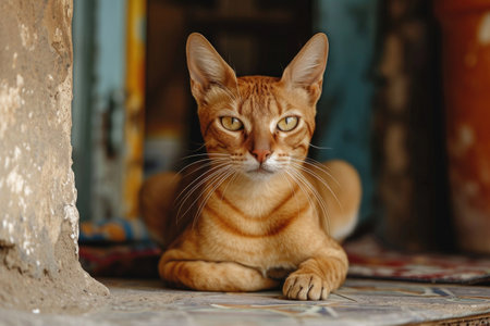 Charming Portrait of an Abyssinian Cat, Showcasing Its Unique Features and Expressive Eyes in Studio