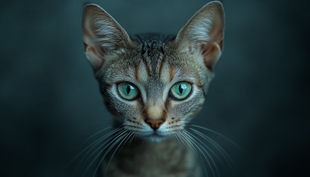 Captivating Portrait of a Domestic Kitten s Intense Gaze Against a Dark Abstract Background