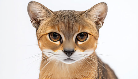 Charming Singapura Cat Portrait with Expressive Eyes and Lovely Demeanor on a White Background