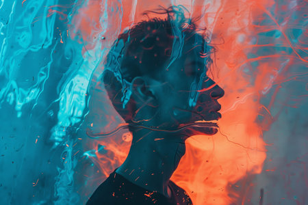 A person with glasses looks astonished surrounded by vibrant wavy distortions. The colors create an intriguing surreal atmosphere.
