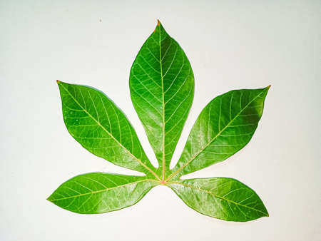 green leaf, cassava leaf isolated on white.