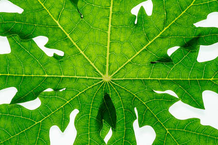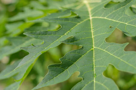 Close-up of Fresh papaya leave with detail texture network.