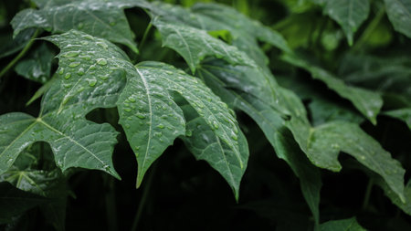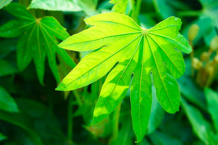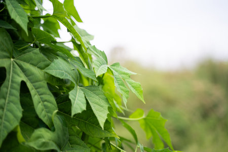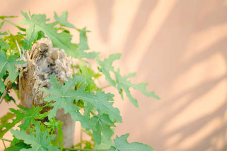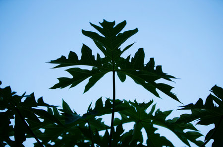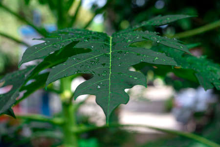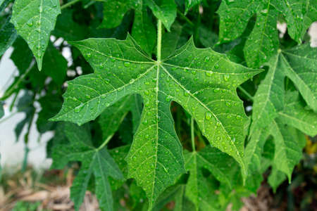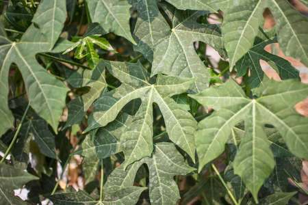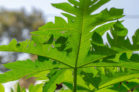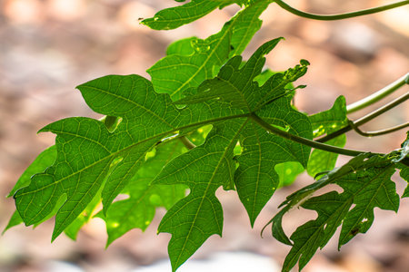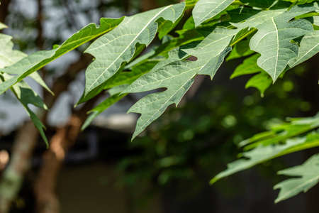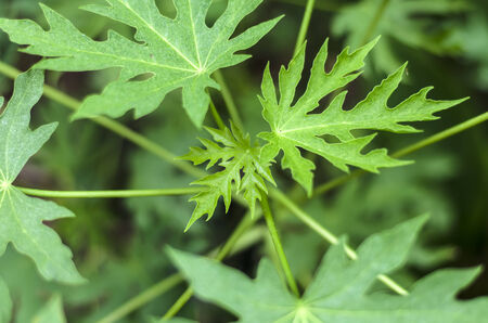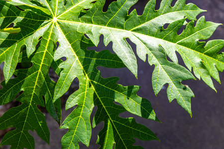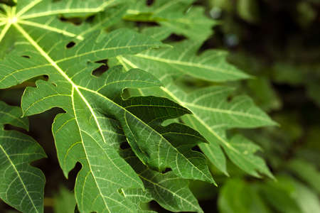 Fresh green papaya leaves with natural light