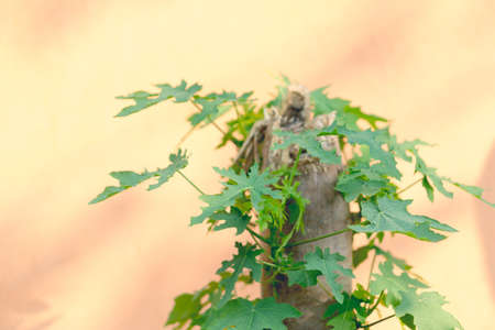 New papaya leaves regenerate from cutted papaya tree