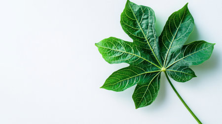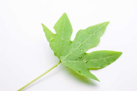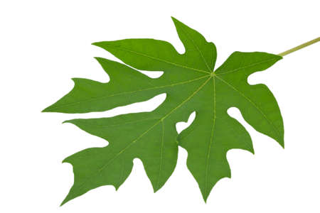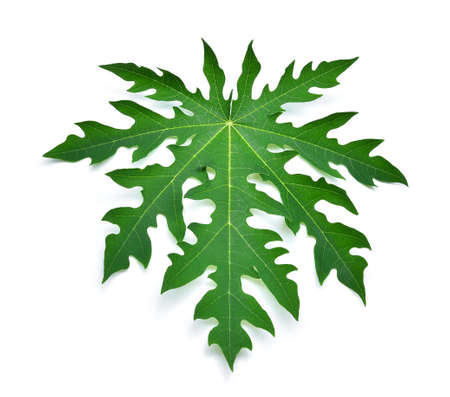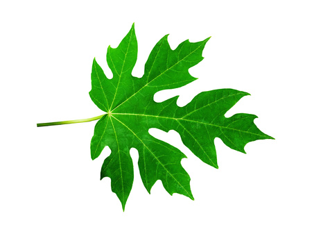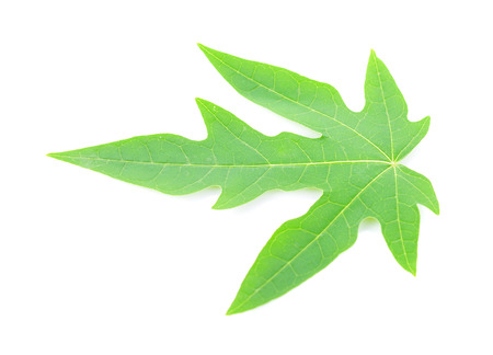 Green papaya leaf on a white background.