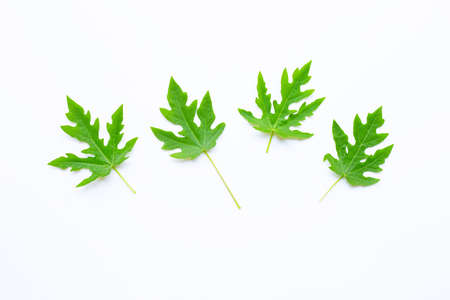Fresh and Green Papaya leaves on white background.