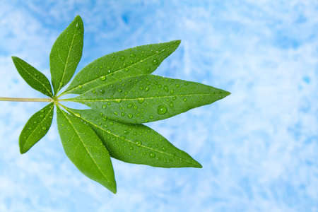 Fresh green plant leaves on blue