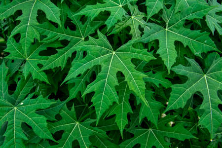 Green Daun pepaya or Papaya leaf background in nature garden.