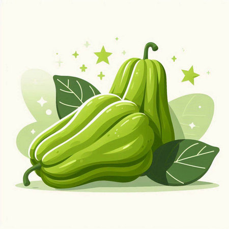 A vibrant. realistic 3D illustration of a chayote. perfect for showcasing this unique and delicious fruit. Use this image for recipe websites. food blogs. or any project related to healthy eating and exotic produce.