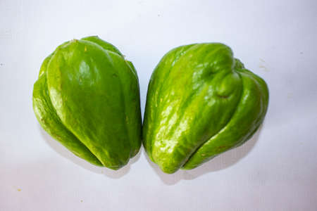 Fresh chayote on white background. Local Asian vegetables are used in vegetarian dishes.