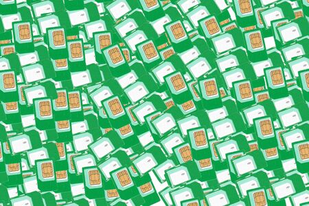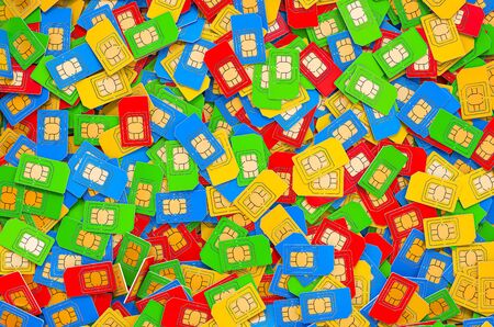 Mobile technology wireless telecommunication internet dial concept . Colorful SIM cards background for smartphones and mobile phones. 3d rendering illustration