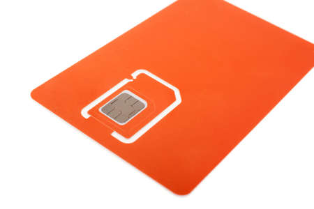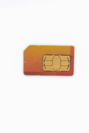 Mobile microchip simcards close up view isolated on studio background. Telecommunication theme