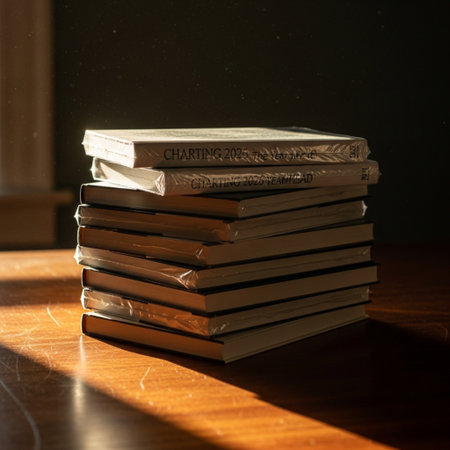 A stack of weathered, vintage books, tied with simple twine, rests on a rocky cliff overlooking a vast, moody sea. This tranquil scene evokes a sense of literary escape, quiet contemplation, and the timeless adventure found within the pages of a good story.
