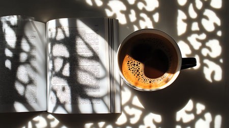 A tranquil scene of a book and coffee inviting moments of peace and introspection.