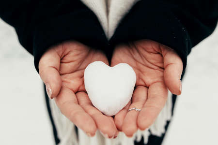 Close-up of gentle hands holding a heart-shaped stone. A picture of love and care.