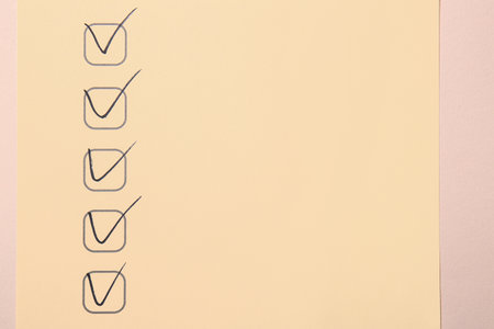 Four checkmarks against white background with copy space. Concept of questionary, checklist, to do list, planning, business or verification. Creative composition in light pastel colors