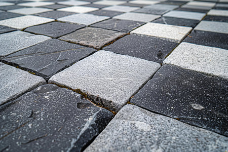 Black and white paving slabs in the rain. Abstract background.