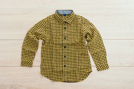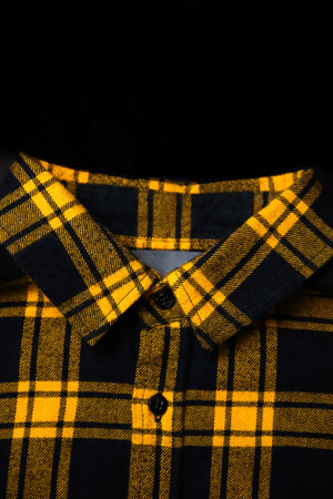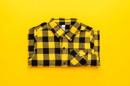 yellow and black checkered shirt on the yellow background. centre compositon