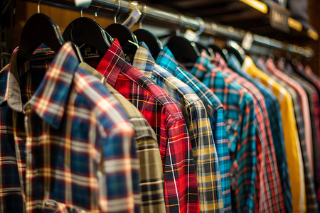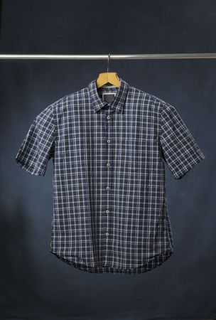grey blue plaid shirts on hangers