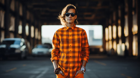 style orange checkered illustration trendy modern, shirt outfit, vibrant chic style orange checkered