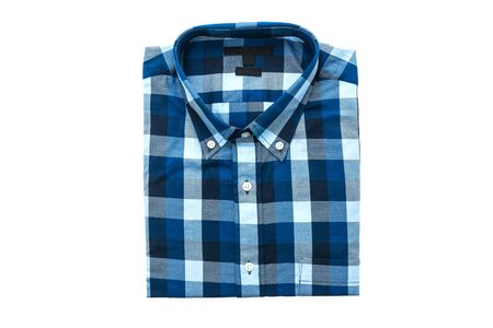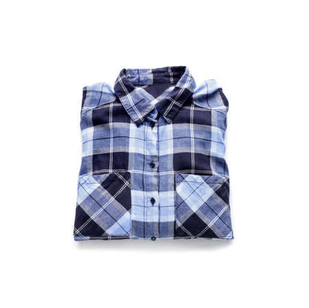 Blue plaid shirt isolated on white background