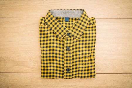 Beautiful men fashion shirt for clothing on wooden background - Vintage Filter Processing