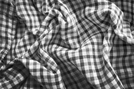Black and white crumpled plaid cotton as a background